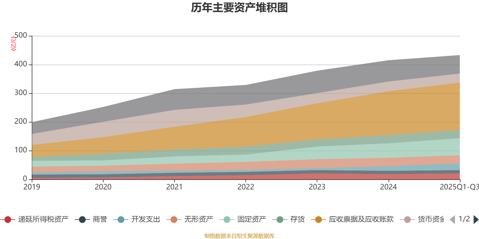资产重大变化方面,截至2025年三季度末,公司在建工程合计较上年末减少91.01%,占公司总资产比重下降2.28个百分点;固定资产较上年末增加17.96%,占公司总资产比重上升1.58个百分点;开发支出较上年末增加44.04%,占公司总资产比重上升1.5个百分点;应收票据及应收账款较上年末增加8.19%,占公司总资产比重上升1.35个百分点。