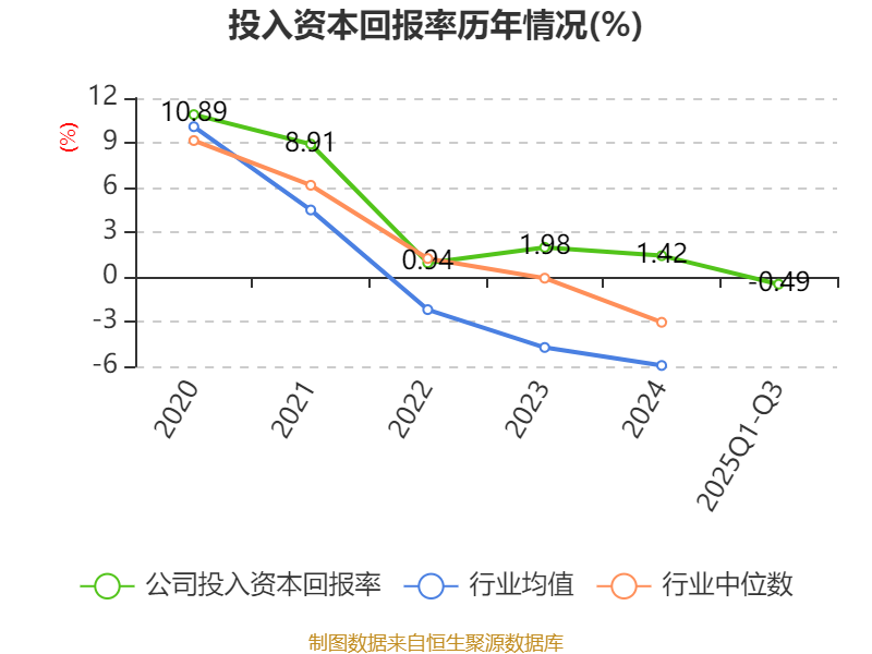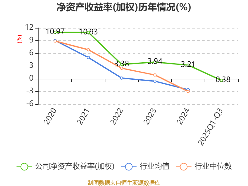 盈利能力方面, 2025年前三季度公司加权平均净资产收益率为-0.38%,同比上升1.65个百分点。公司2025年前三季度投入资本回报率为-0.49%,较上年同期上升1.31个百分点。