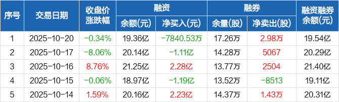 佰维存储:融资净偿还7840.53万元,融资余额19.36亿元(10-20)