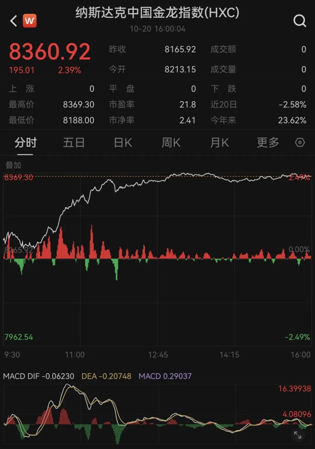 美东时间10月20日周一,美国三大股指上涨,现货黄金再创历史新高。市场对地区银行的信贷担忧有所缓解、美国政府有望结束停摆,且特朗普近期豁免数十种进口商品关税,这些消息提振了市场情绪。苹果收高3.94%,股价创下历史新高。