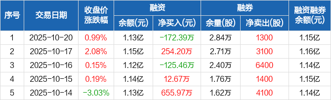 瑞丰新材:融资净偿还172.39万元,融资余额1.13亿元(10-20)