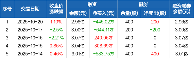 中远海科:融资净偿还445.02万元,融资余额2.96亿元(10-20)