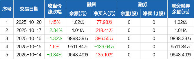 超达装备:连续3日融资净买入累计682.93万元(10-20)