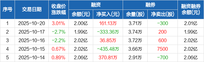 美盈森:融资净买入161.13万元,融资余额2亿元(10-20)