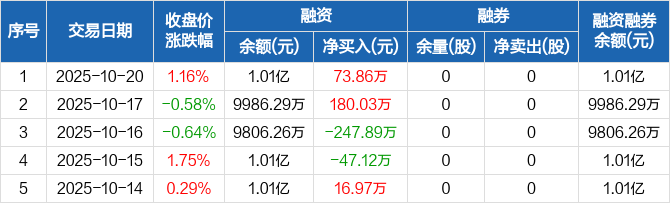 民生健康:融资净买入73.86万元,融资余额1.01亿元(10-20)