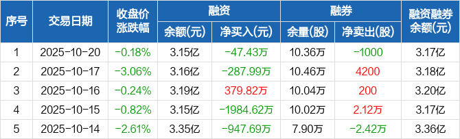 华林证券:融资净偿还47.43万元,融资余额3.15亿元(10-20)