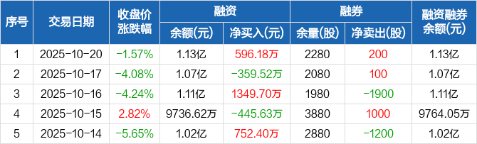 华宝新能:融资净买入596.18万元,融资余额1.13亿元(10-20)