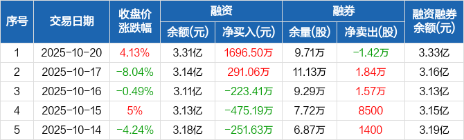 新雷能:融资净买入1696.5万元,融资余额3.31亿元(10-20)
