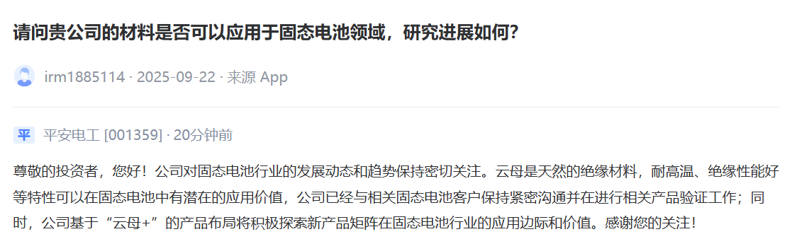 平安电工:已与相关固态电池客户进行相关产品验证工作