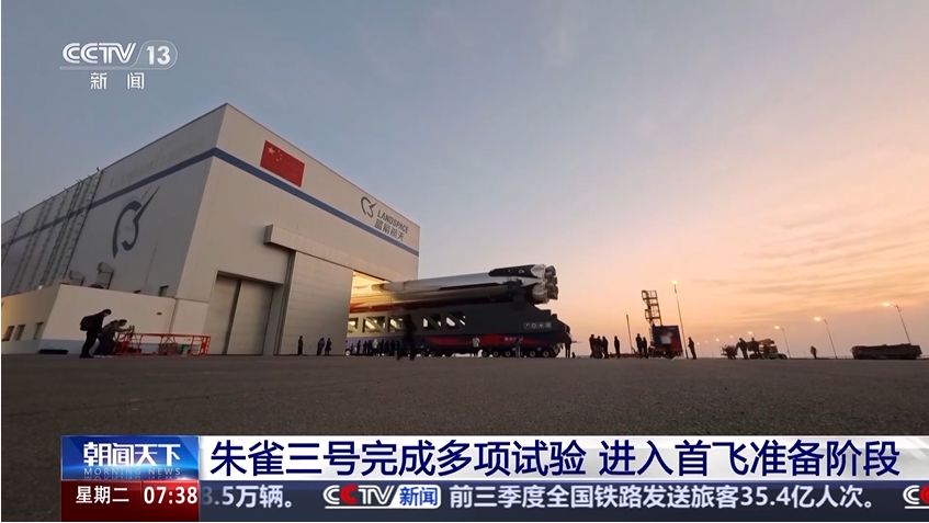 目前,朱雀三号正按计划实施星罩组合体垂直吊装对接演练,随后将返回技术区,为正式入轨发射及一级回收开展各项准备。