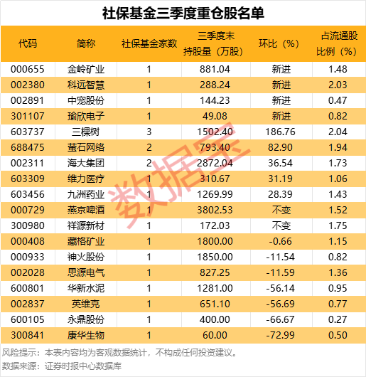社保基金三季度重仓股: