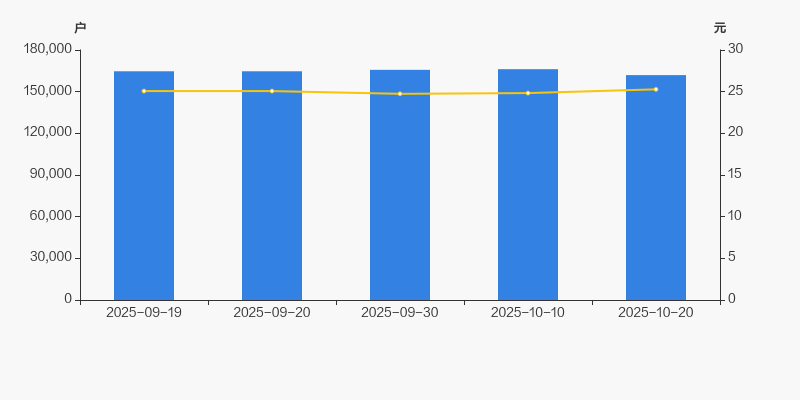 2025年9月19日至今,公司股东户数有所下降,区间跌幅为1.68%。2025年9月19日至2025年10月20日区间股价上涨0.84%。