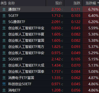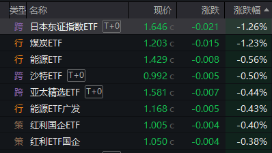 ETF收盘:通信ETF上涨6.76% 日本东证指数ETF下跌1.26%