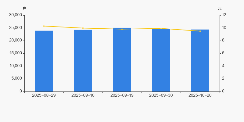 2025年8月29日至今,公司股东户数有所增长,区间涨幅为1.96%。2025年8月29日至2025年10月20日区间股价下降7.81%。