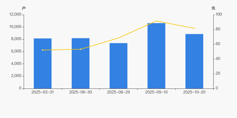 2025年3月31日至今,公司股东户数有所增长,区间涨幅为8.79%。2025年3月31日至2025年10月20日区间股价上涨56.29%。