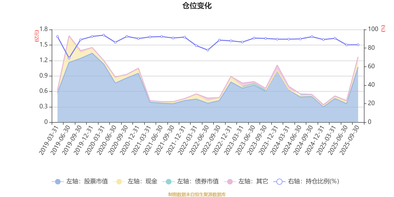 据定期报告数据统计,近三年平均股票仓位为88.65%,同类平均为88.1%。2020年一季度末基金达到93.94%的最高仓位,2019年上半年末最低,为69.22%。