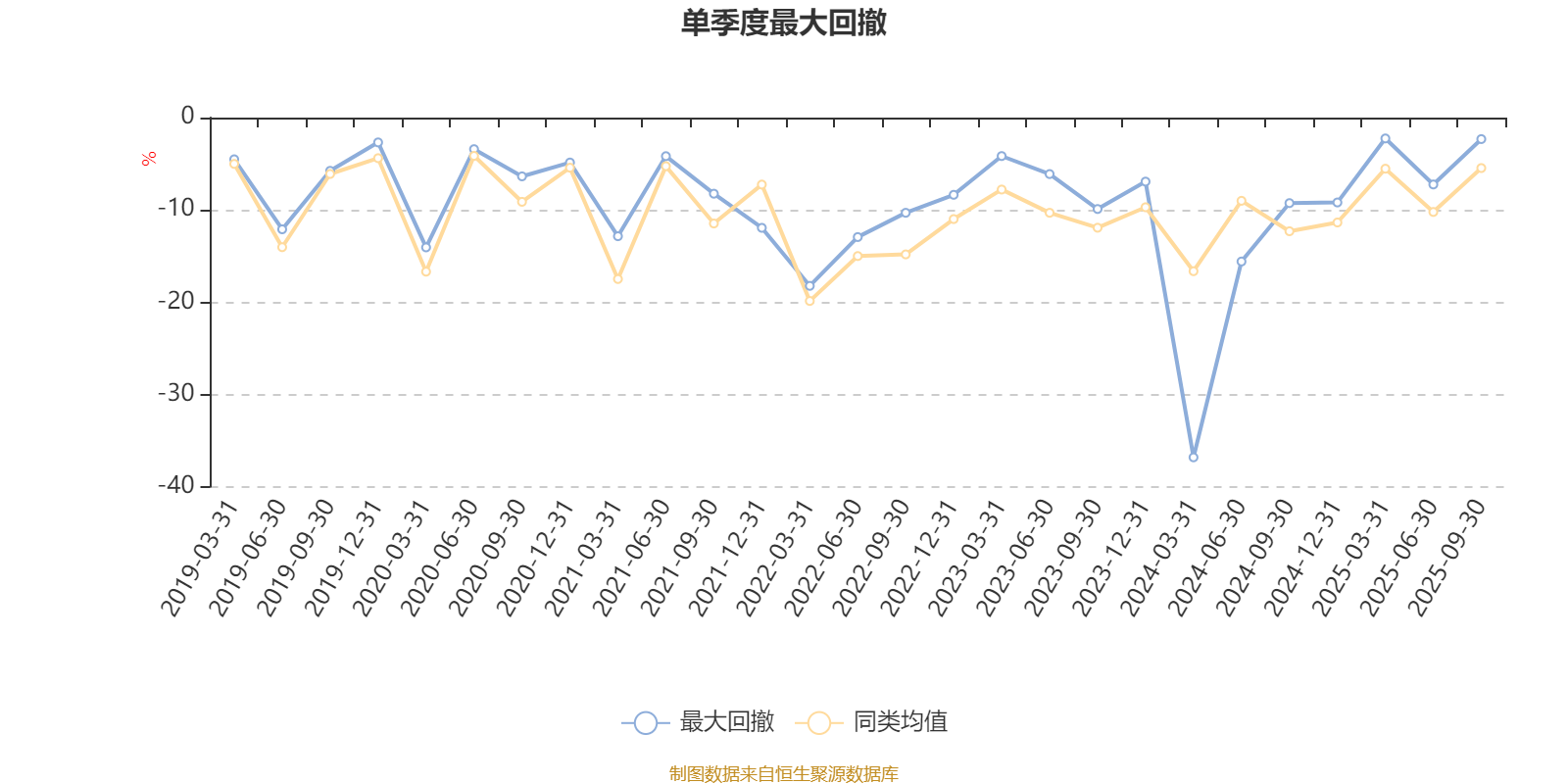 截至10月20日,基金近三年最大回撤为41.09%,同类可比基金排名60/85。单季度最大回撤出现在2024年一季度,为36.83%。