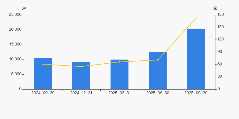 自2024年12月31日以来,公司股东户数连续3期上涨,截至目前增幅为123.33%。2024年12月31日至2025年9月30日区间股价上涨213.16%。