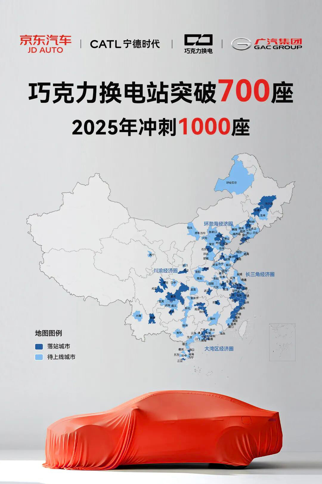 “国民换电”服务“国民好车”。近期,京东汽车、时代电服和广汽宣布联合推出一款“国民好车”,计划于京东2025“双十一”期间正式发布,并在京东平台开启独家销售,让买车像买电器一样方便,与国民换电网络共同构建从购车到补能的全链路便捷服务,让高品质电动出行进入千万家。