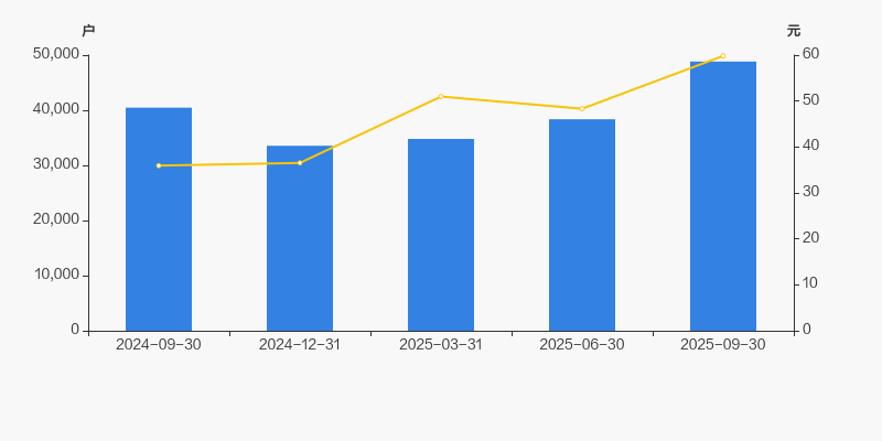 自2024年12月31日以来,公司股东户数连续3期上涨,截至目前增幅为45.54%。2024年12月31日至2025年9月30日区间股价上涨63.79%。