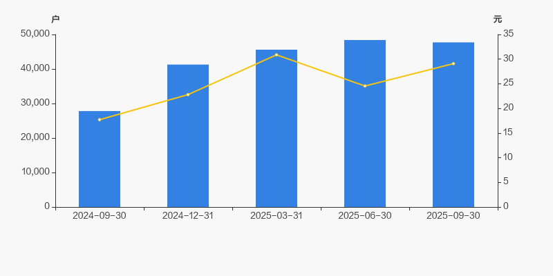 2024年9月30日至今,公司股东户数显著大幅增长,区间涨幅达71.57%。2024年9月30日至2025年9月30日区间股价上涨64.26%。