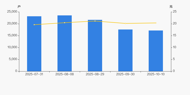 自2025年8月8日以来,公司股东户数连续3期下降,截至目前减幅为27.04%。2025年8月8日至2025年10月10日区间股价下降0.49%。