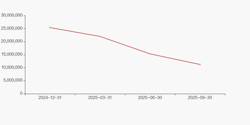 2024年12月31日至今,公司股东户数显著下降,区间跌幅为16.56%。2024年12月31日至2025年9月30日区间股价下降6.73%。
