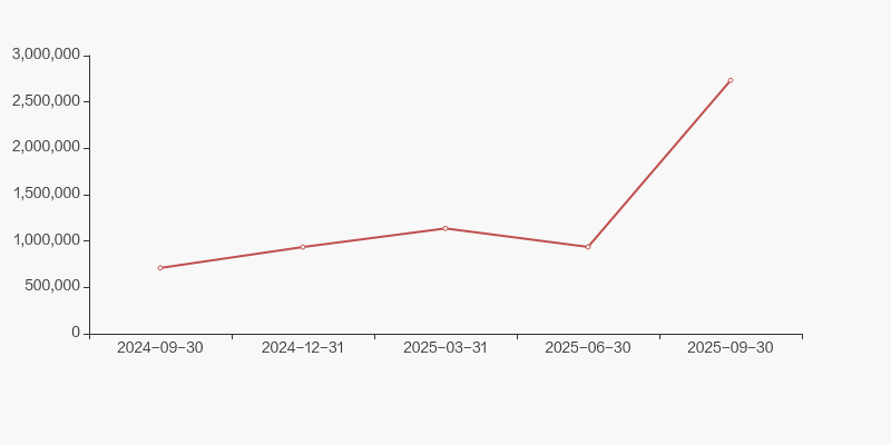 2024年9月30日至今,公司股东户数显著增长,区间涨幅为38.97%。2024年9月30日至2025年9月30日区间股价上涨33.07%。