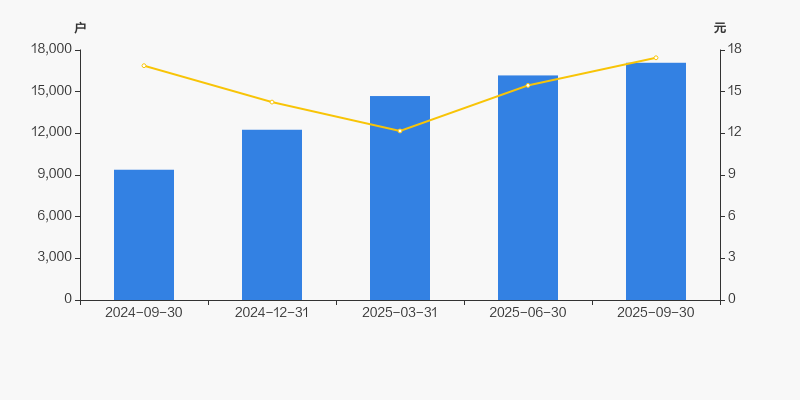2024年9月30日至今,公司股东户数显著大幅增长,区间涨幅达82.12%。2024年9月30日至2025年9月30日区间股价上涨3.37%。