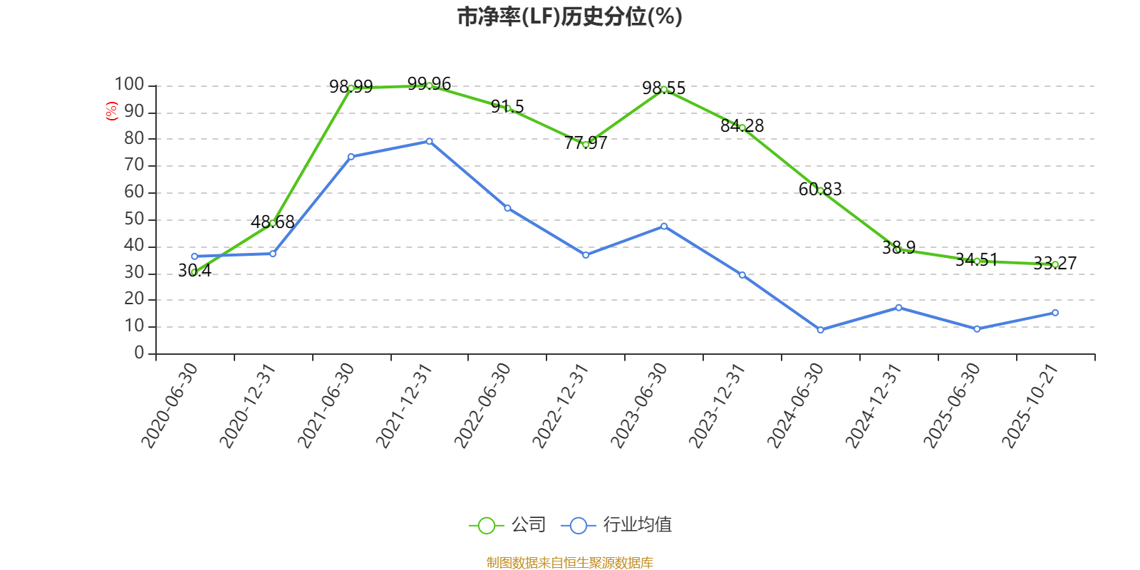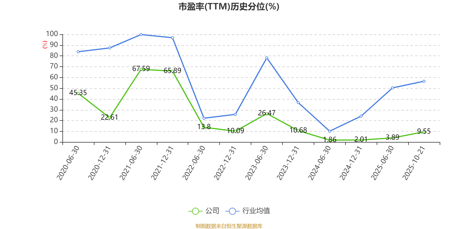 市盈率、市净率为负时,不显示当期分位数,会导致折线图中断。