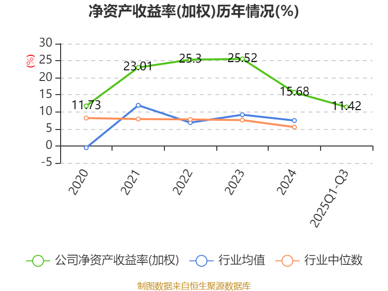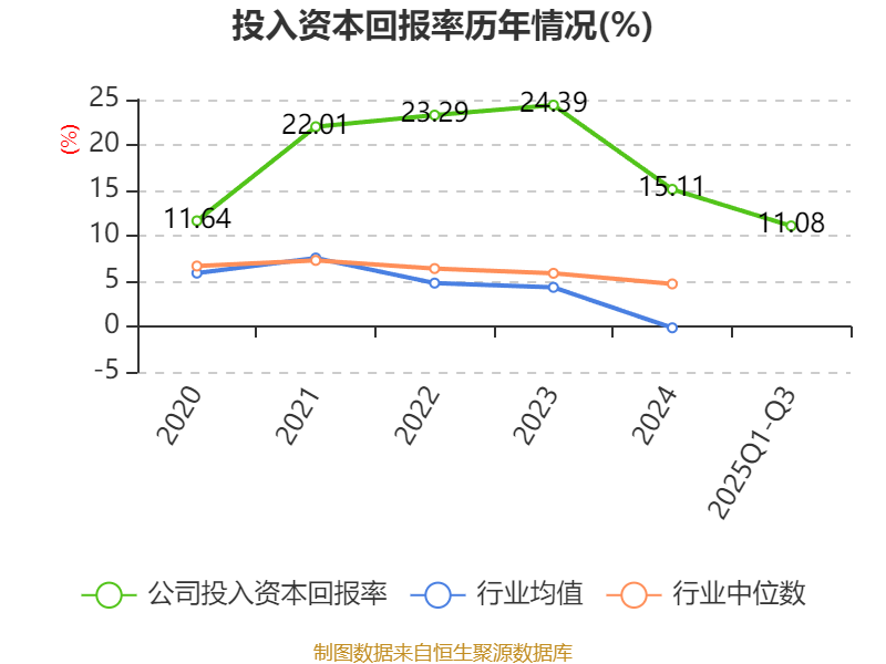 盈利能力方面, 2025年前三季度公司加权平均净资产收益率为11.42%,同比下降2.51个百分点。公司2025年前三季度投入资本回报率为11.08%,较上年同期下降2.28个百分点。