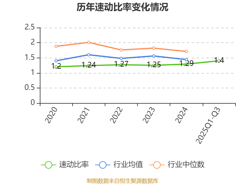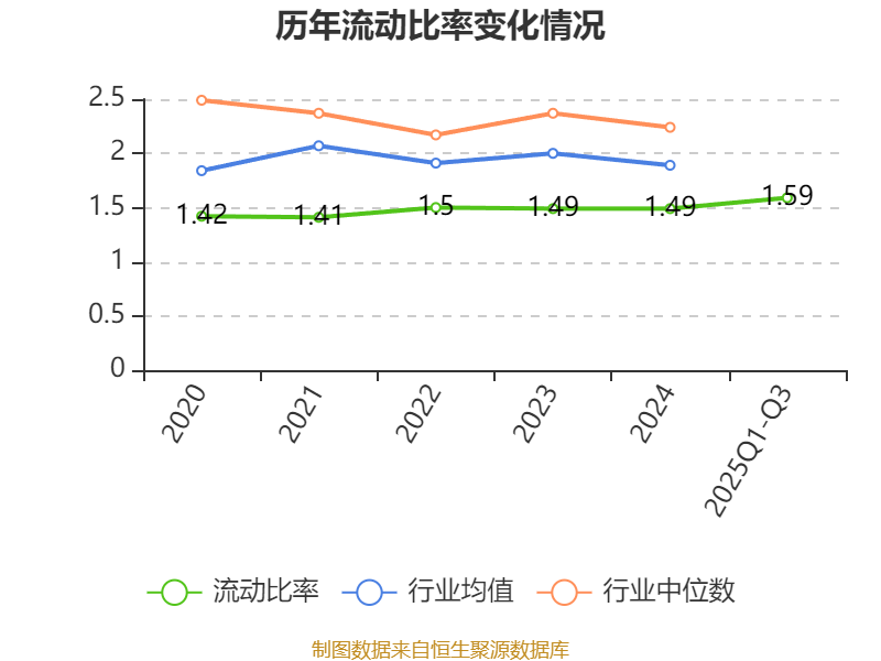 2025年前三季度,公司流动比率为1.59,速动比率为1.4。