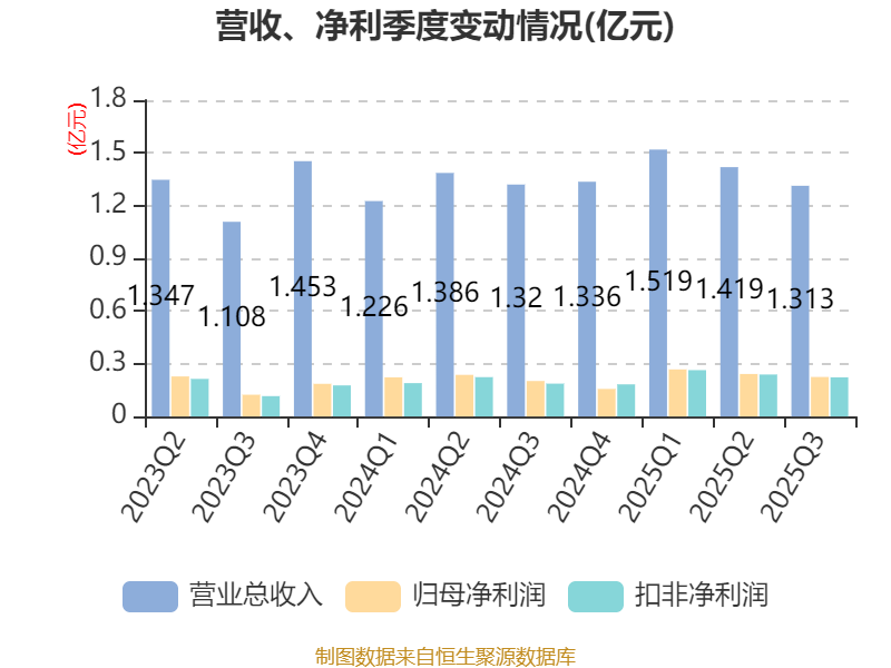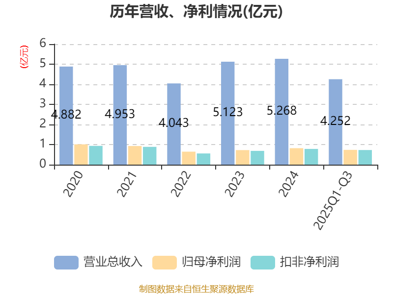 2025年前三季度,公司流动比率为5.51,速动比率为4.86。