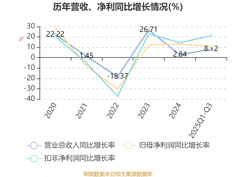 中证智能财讯密封科技(301020)10月22日披露2025年第三季度报告。前三季度公司实现营业总收入4.25亿元,同比增长8.12%;归母净利润7346.61万元,同比增长10.95%;扣非净利润7270.33万元,同比增长21.13%;经营活动产生的现金流量净额为3578.76万元,同比下降31.05%;报告期内,密封科技基本每股收益为0.5元,加权平均净资产收益率为7.66%。