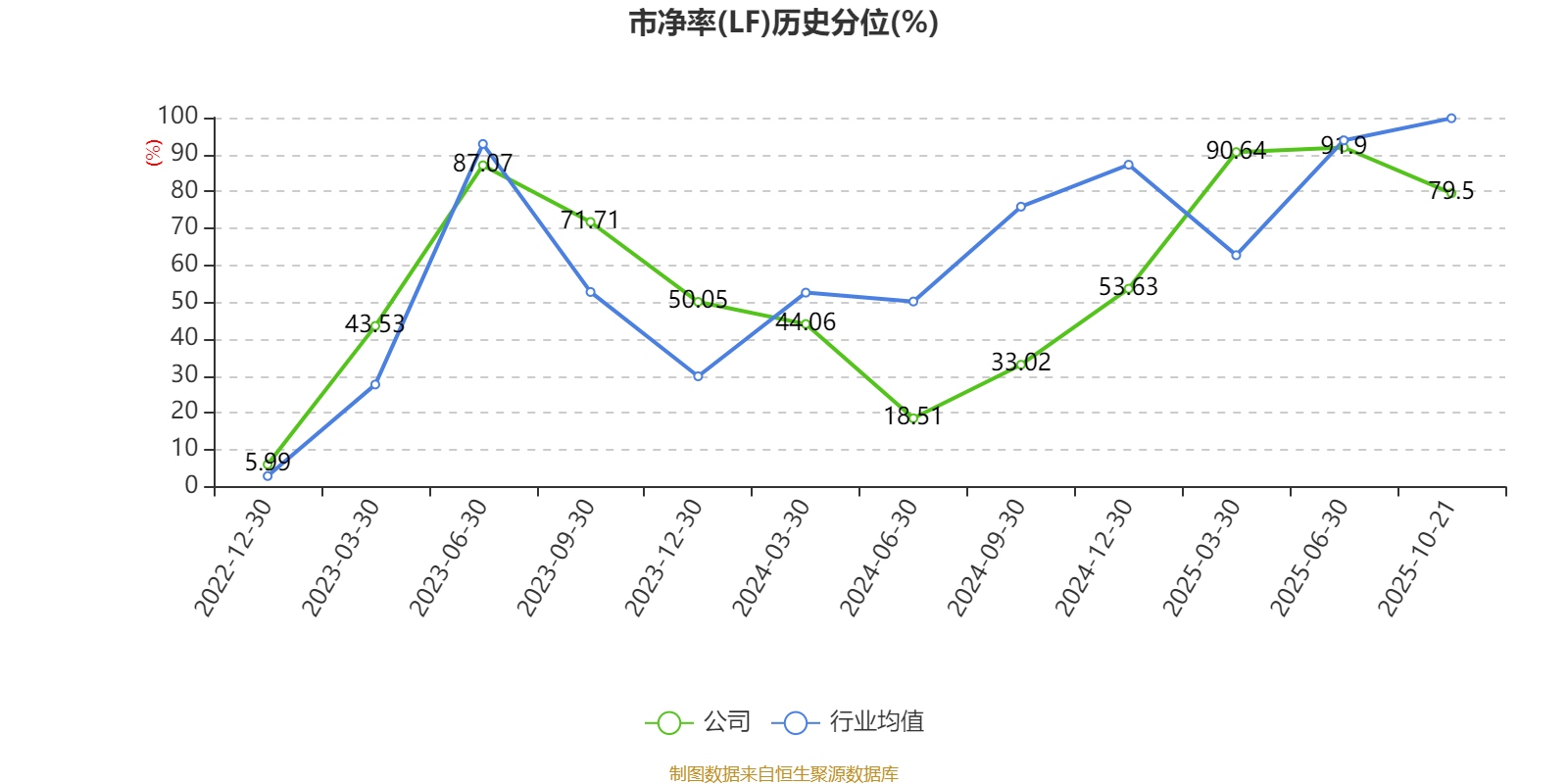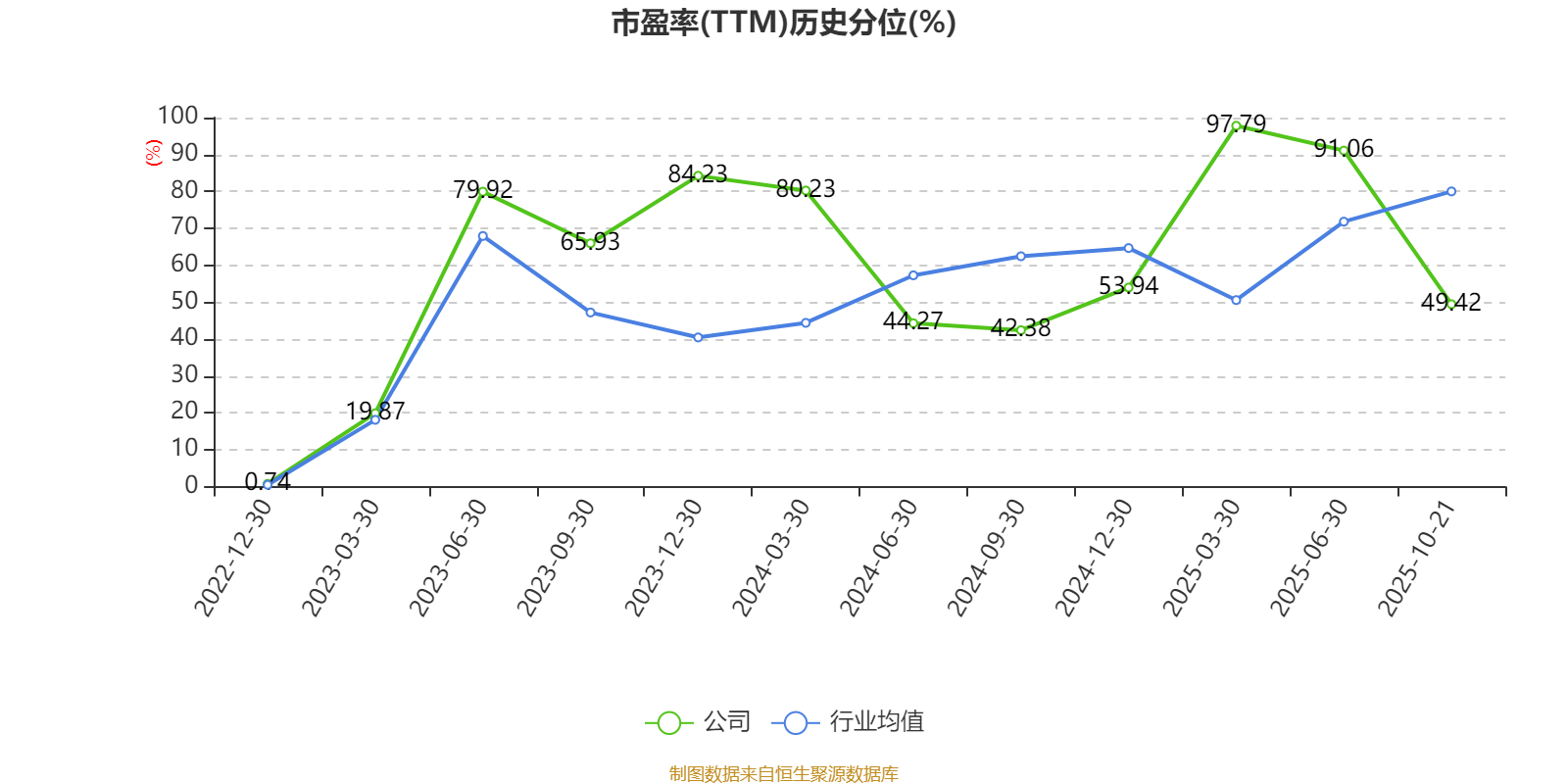 市盈率、市净率为负时,不显示当期分位数,会导致折线图中断。
