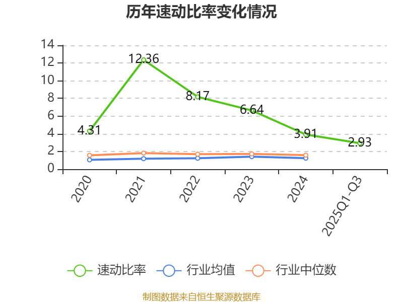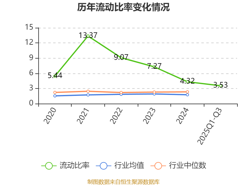 2025年前三季度,公司流动比率为3.53,速动比率为2.93。