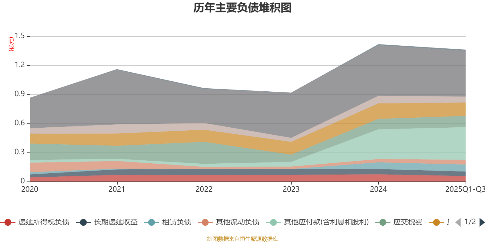 负债重大变化方面,截至2025年三季度末,公司应付票据及应付账款较上年末减少9.42%,占公司总资产比重下降0.5个百分点;应付职工薪酬较上年末减少12.53%,占公司总资产比重下降0.18个百分点;合同负债较上年末减少22.56%,占公司总资产比重下降0.14个百分点;递延所得税负债较上年末减少24.36%,占公司总资产比重下降0.14个百分点。