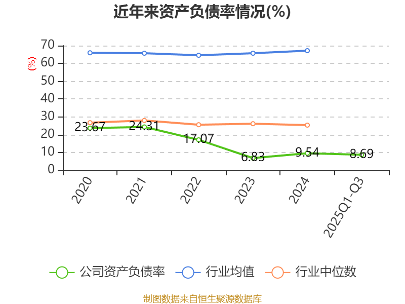 2025年前三季度,公司流动比率为10.31,速动比率为9.25。
