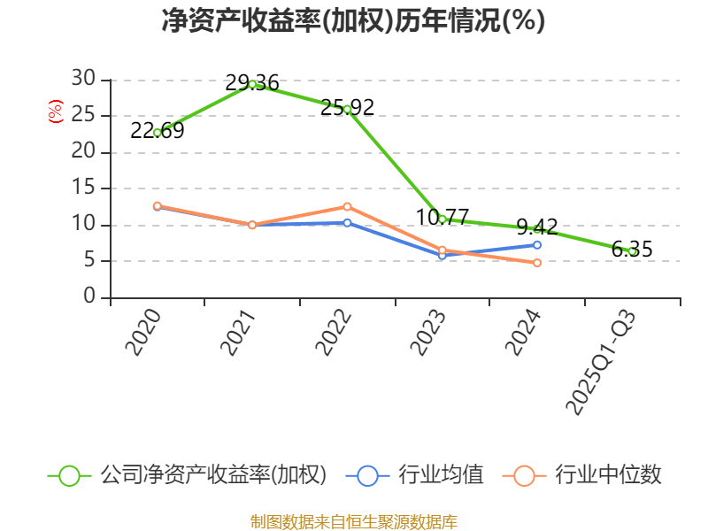 盈利能力方面, 2025年前三季度公司加权平均净资产收益率为6.35%,同比下降0.46个百分点。公司2025年前三季度投入资本回报率为6.09%,较上年同期上升0.18个百分点。