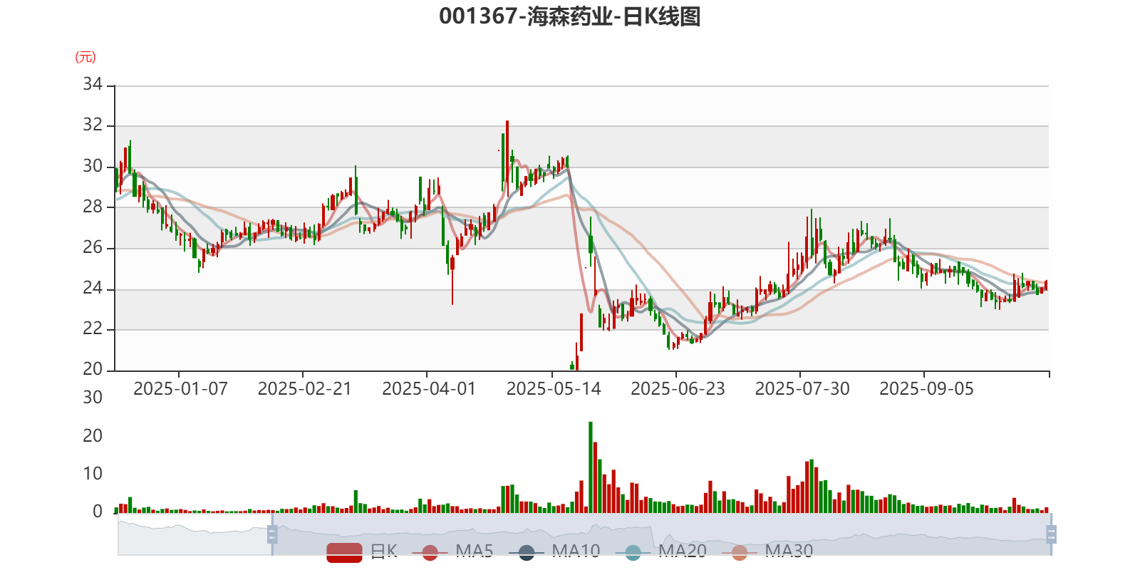 以10月21日收盘价计算,海森药业目前市盈率(TTM)约为29.9倍,市净率(LF)约2.59倍,市销率(TTM)约7.25倍。