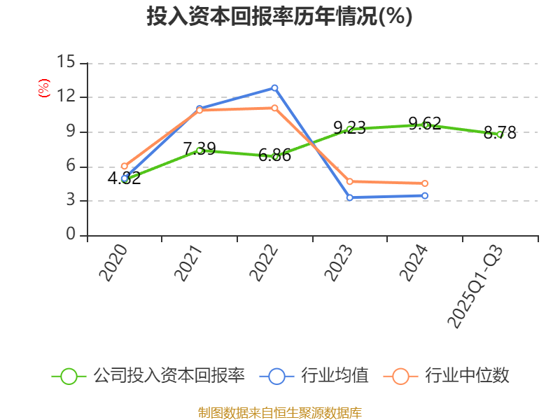 盈利能力方面, 2025年前三季度公司加权平均净资产收益率为11.48%,同比上升1.04个百分点。公司2025年前三季度投入资本回报率为8.78%,较上年同期上升0.99个百分点。