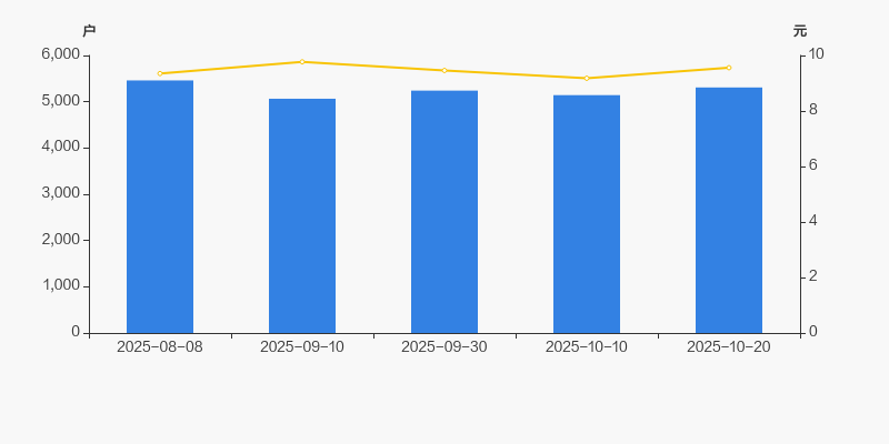 2025年8月8日至今,公司股东户数有所下降,区间跌幅为2.78%。2025年8月8日至2025年10月20日区间股价上涨2.25%。