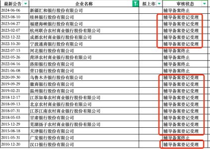 今年6月,广东顺德农商行与保荐机构主动撤回发行申请,深交所随即终止其审核;1月,排队近五年的广州银行也作出了“撤回发行上市申请”的决定;2024年以来,亳州药都农商行、江苏海安农商行、安徽马鞍山农商行等相继退出IPO进程,银行上市“后备军”规模持续收缩。