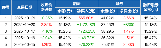 航天电子:融资净买入565.6万元,融资余额15.19亿元(10-21)