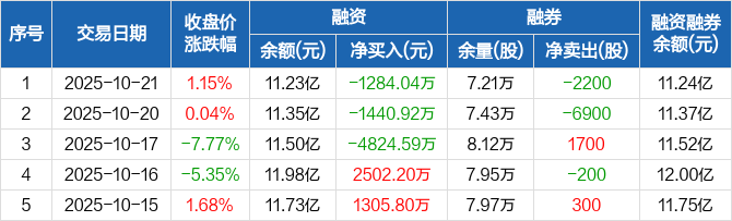 博威合金:连续3日融资净偿还累计7549.55万元(10-21)