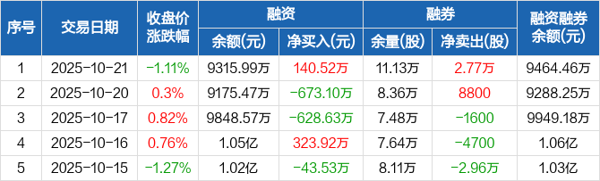 宁沪高速:融资净买入140.52万元,融资余额9315.99万元(10-21)
