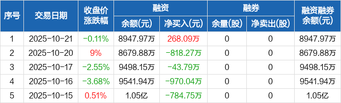 卓越新能:融资净买入268.09万元,融资余额8947.97万元(10-21)