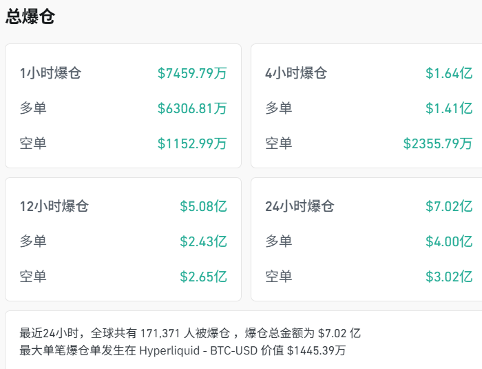 多个加密货币品种大跌,截至10月22日7:18,超17万人被爆仓,爆仓金额超7亿美元。
