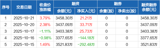 迈拓股份:连续3日融资净买入累计80.65万元(10-21)