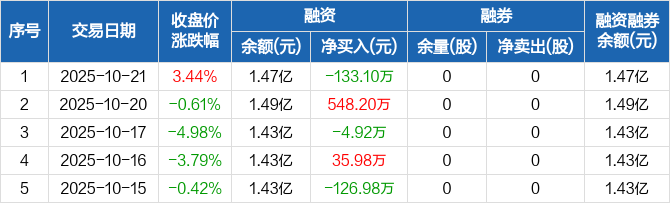 实朴检测:融资净偿还133.1万元,融资余额1.47亿元(10-21)